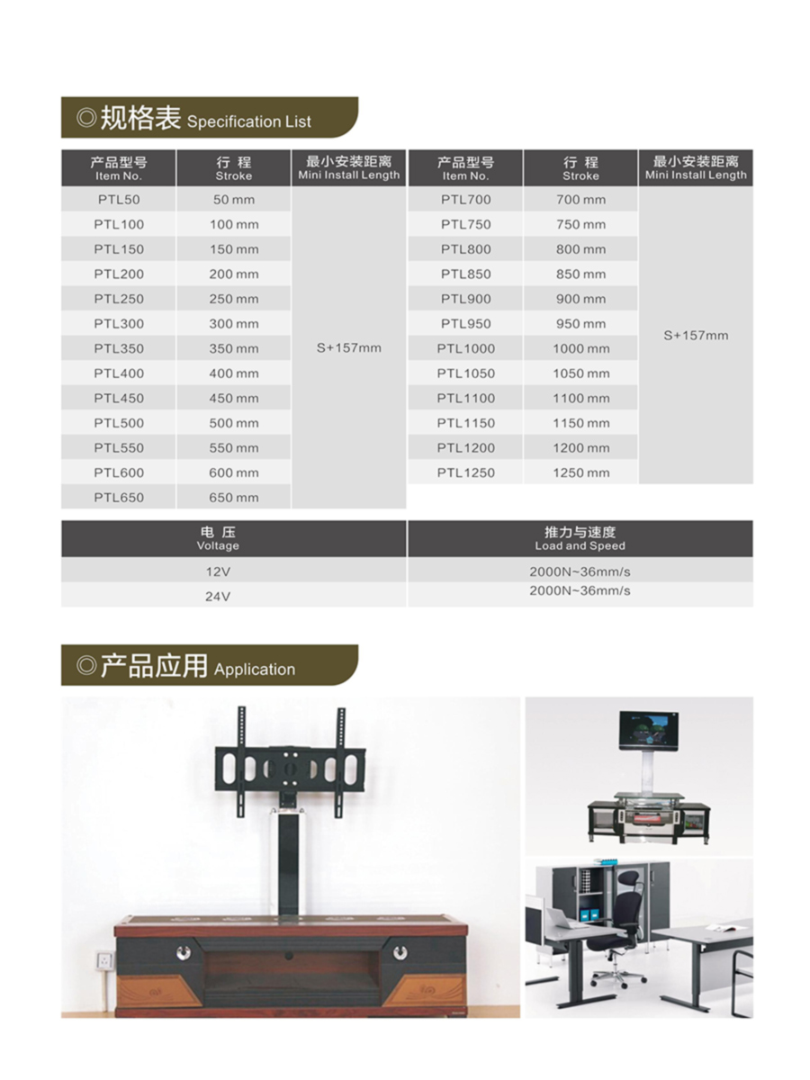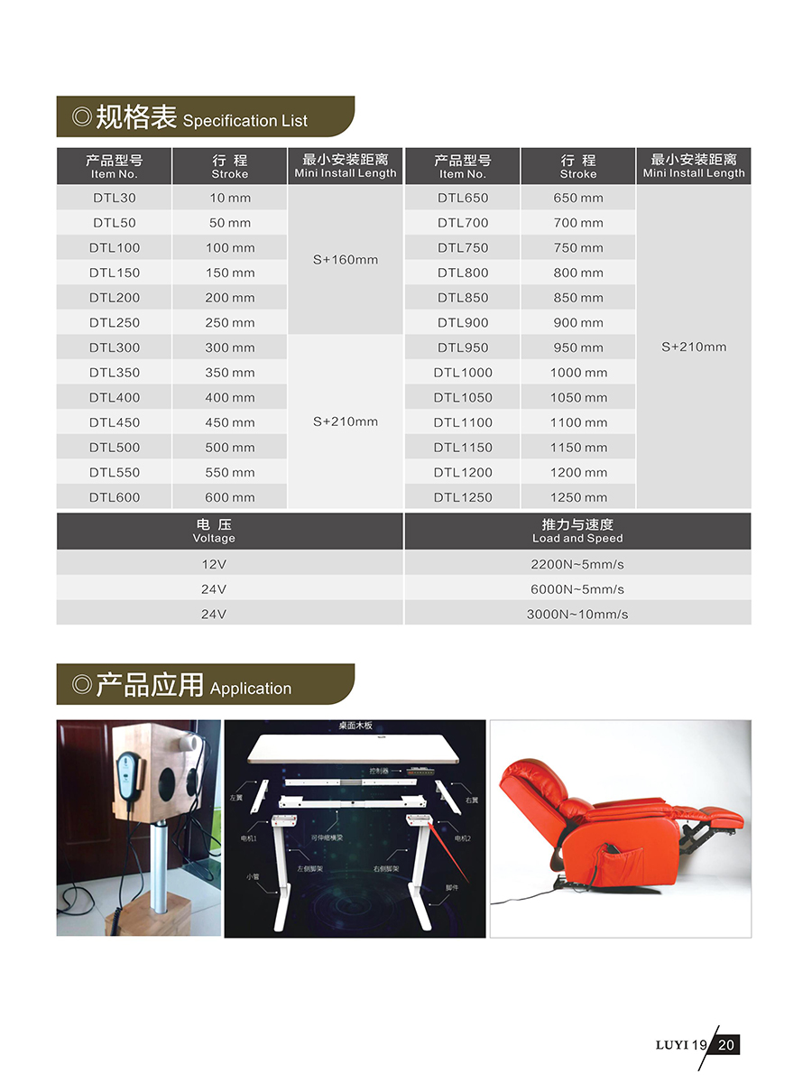步進電動推桿規格選型表